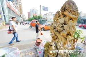 3.6萬元!江北區(qū)望海花市四區(qū)南側的一座鐘乳石最近開出了天價,等待買家。