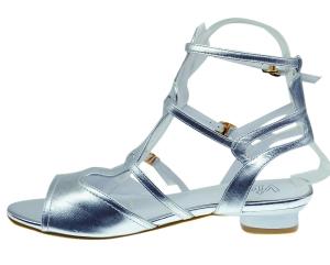 銀色角斗士簡約版涼鞋(VIA,668元)這款簡約的小鞋子用銀色搭配金色的扣子,很具有未來主義的風格,整個鞋子設計簡約、清爽涼快,不會顯得啰嗦。