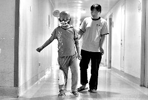 在和母親陳淑春談話時,7歲的子晨從門邊露出光光的小腦袋向醫(yī)生辦公室里張望。醫(yī)生說,能恢復(fù)到現(xiàn)在這樣,已有很大改觀,“剛住院時,他雙腿沒有知覺,3次病危!