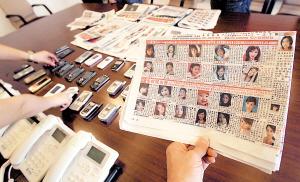 借開門的一瞬間,化裝成物管人員的民警發(fā)現(xiàn),屋內(nèi)有3名女子手捧電話,一邊在翻看本子,一邊接電話。在一旁,幾十部手機、小靈通響個不停。