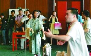昨日,國(guó)家京劇院的排練館里,6名演員在參觀者面前認(rèn)真對(duì)戲。隔壁,一名女演員“表演”著化妝、穿戴,準(zhǔn)備唱一出“天女散花”,這些幕后工作平時(shí)并不對(duì)外開(kāi)放。
