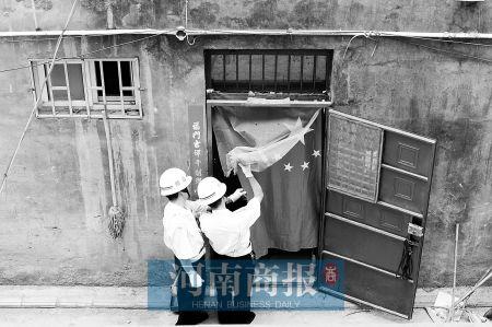 鄭州一居民將國旗掛在門口處,把國旗當(dāng)門簾?“不,我家有門簾。我這是愛國呢。”吳先生說。