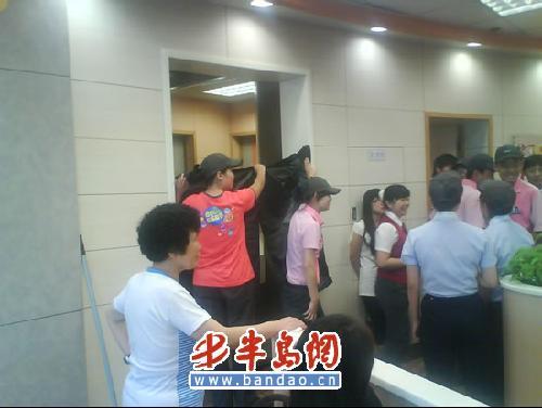 記者恰好在易初蓮花附近,接到小王的電話之后迅速趕到了肯德基。這時(shí)候,肯德基店內(nèi)的員工拿出了不少垃圾袋,將衛(wèi)生間的門擋了起來,同時(shí)店面經(jīng)理表示已經(jīng)撥打了110。