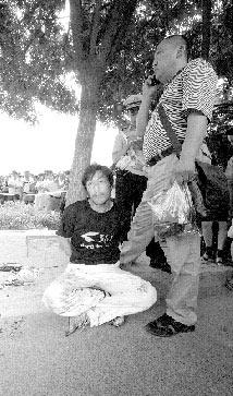 “就是這個人剛才用裁紙刀,把一個女子的肚子劃開了。女的當時就昏迷了,剛被120救走。”50多歲的賣玉米的趙女士對記者說,她說話的聲音依然發(fā)顫,“太嚇人了,這人下手太狠了。兩人當時在不停爭吵,當時我還想著是夫妻在吵架呢。”