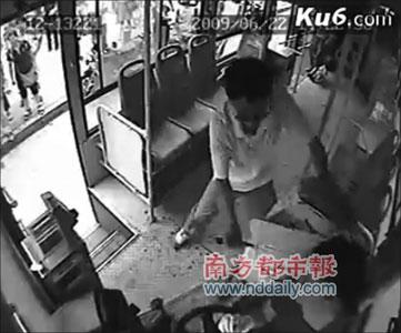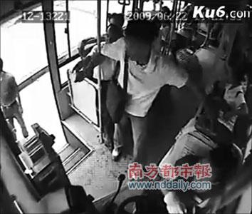 視頻同時出現(xiàn)在酷6視頻網(wǎng)站及湖南本地的紅網(wǎng)永州論壇。視頻顯示,一名眼戴墨鏡、肩挎黑包的持匕首的男子在多人追趕下,緊張地沖上一輛剛好進站的公交車,用刀威脅女司機馬上開車。女司機不慌不忙,既沒花容失色,也沒大聲尖叫,聲調(diào)都沒變高,只是要男子冷靜,要求先放乘客們下去。