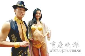 昨日(6月26日),國內(nèi)首款價值400萬元的黃金內(nèi)衣,驚艷亮相第四屆重慶婚禮博覽會。組委會稱,本屆婚博會首日共吸引上千對新人參加,將持續(xù)到明晚7時,地點在南坪重慶國際會展中心。