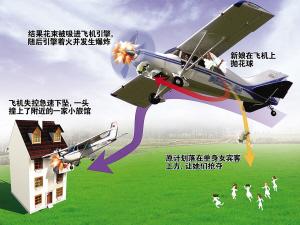 新人宣誓儀式結(jié)束后,早早坐在飛機(jī)上手捧一束鮮花的新娘伊西多羅彭西爾里開始高空拋花,就在花束飛出飛機(jī)的那一刻,恐怖一幕發(fā)生了:飛機(jī)引擎轉(zhuǎn)動(dòng)產(chǎn)生的巨大吸力瞬間就吞掉了這束花,隨后引擎著火并發(fā)生爆炸,最后墜毀在附近一家50人居住的旅館上,幸運(yùn)的是旅館里的人都沒(méi)有受傷。