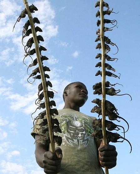 中國日報網(wǎng)環(huán)球在線消息:你能想象嗎?處處被人喊打的過街老鼠如今在非洲國家馬拉維成為了當?shù)厝搜壑械摹懊牢丁。?jù)英國《每日郵報》8月9日報道,如今不少馬拉維當?shù)厝藢㈦缰苹蛘唢L干的熟田鼠穿成串沿街叫賣,雖然田鼠“賣相有些猙獰”,但是銷路卻十分不錯。
