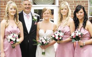 圖為新娘卡倫(左三)、新郎肯尼斯和他們?nèi)齻(gè)充當(dāng)伴娘的女兒。