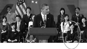 不久前,奧巴馬剛剛結(jié)束訪華,此行不僅讓奧巴馬成為各大媒體關(guān)注的焦點(diǎn),同時(shí)也使一位神秘女子成為網(wǎng)絡(luò)紅人。11月16日在上?萍拣^會(huì)場(chǎng),出現(xiàn)在奧巴馬身后的一名黑衣女子被攝入媒體鏡頭中,其亮麗的外形、獨(dú)特的氣質(zhì)吸引了眾多網(wǎng)民的眼球,網(wǎng)友迅速展開(kāi)對(duì)女孩的“人肉搜索”。范冰冰親戚?楊瀾侄女?或者又是一場(chǎng)炒作?種種未經(jīng)確定的猜測(cè)充斥著各大論壇,也為黑衣女孩的身份蒙上了一層神秘的面紗。