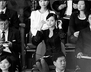 11月16日13時(shí),對(duì)中國(guó)進(jìn)行國(guó)事訪問(wèn)的美國(guó)總統(tǒng)奧巴馬走進(jìn)上?萍拣^會(huì)場(chǎng),與中國(guó)青年展開(kāi)對(duì)話。但是和奧巴馬的演講相比,現(xiàn)場(chǎng)攝影記者對(duì)一名黑衣女子表現(xiàn)出了更大的興趣。這名美女在現(xiàn)場(chǎng)脫掉紅色外套露出黑色套裝的全過(guò)程被記者用相機(jī)記錄下來(lái),被制作成GIF動(dòng)畫(huà)上傳網(wǎng)絡(luò),隨后這組動(dòng)畫(huà)在網(wǎng)上論壇以及QQ群里廣泛傳播,隨后又有網(wǎng)友將奧巴馬演講視頻中有關(guān)該女子的片段截圖上傳,黑衣美女的美貌和氣質(zhì)迅速傾倒眾人。