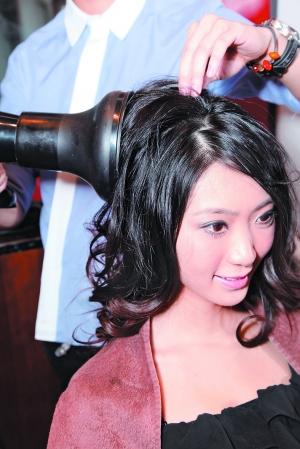 Step3一邊用風(fēng)罩吹頭,一邊大幅度撥松發(fā)根,烘干頭發(fā)。同時(shí)要推松發(fā)根,維持十多秒即可。