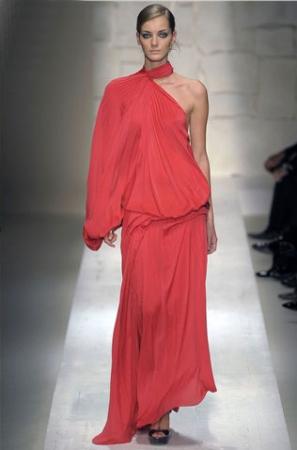 玫紅色的亮麗一下子扎入我們的眼睛,柔滑的絲緞和嵌亮絲的面料互相纏繞交錯,不同的光澤質(zhì)感豐富了視覺。再加上斜肩的吊帶、80年代風(fēng)格的Body-con捆綁設(shè)計(jì),以及前短后長露出修長雙腿的裙擺,都讓這款長裙成為本季最佳性感之選。