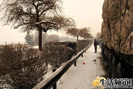 往四平的路上,吉林慈善會汲壽平主任(中)風(fēng)雪同行