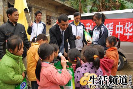 雅士利愛心小組向瑤族小孩發(fā)放豆奶粉