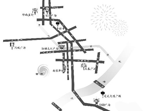 運(yùn)河文化廣場中心設(shè)置大型主題燈座,廣場南側(cè)江南戲臺(露天)將舉辦祈福2010運(yùn)河元宵燈彩音樂會。