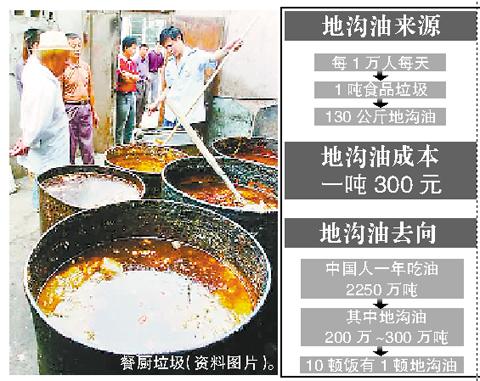 專家稱中國年約300萬噸地溝油“復(fù)出”