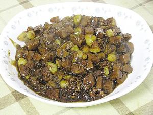 4、再放入板栗、白果、香干丁翻炒。