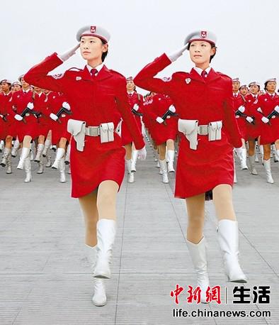 張曉菲(左)參加國慶60周年閱兵式