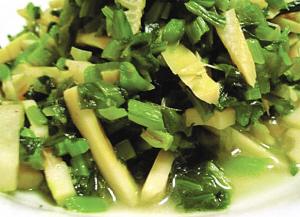 這四道菜雖然看起來簡單,用的卻都是當(dāng)下的時令菜品,薺菜塘鯉魚以春末夏初江南一帶特有的野生塘鯉魚做主料,將魚去骨去皮切片,與春季最新鮮的野菜薺菜一起翻炒,色澤明快,鮮嫩香濃,純樸淡雅,營養(yǎng)搭配合理。