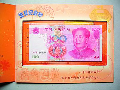 記者在淘寶網(wǎng)上搜索“生日鈔”關(guān)鍵字,出現(xiàn)了近300個搜索結(jié)果,其中浙江、上海、北京、廣州的賣家都有。記者打開一家網(wǎng)店,展示這些不同面值的紙幣,紙幣編號清晰地拍攝出來,都是可以與年月日相對應(yīng)的號碼。該網(wǎng)店還特別打出廣告,“一億張紙幣中,號碼與你生日相同的只有一張,概率比中500萬元彩票還要難10倍!