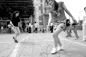 昨日,全聚德和平門店廣場,近50名90后市民體驗(yàn)老玩具、老游戲。本報(bào)記者 秦斌 攝