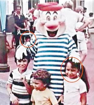 唐娜的這張童年照是在佛羅里達(dá)州迪斯尼樂園旅游時拍攝的,唐娜和兩個弟弟站在照片的前方,他們當(dāng)時正在和迪斯尼動畫片《小飛俠》中的一個卡通人物造型“史米先生”合影。當(dāng)時,亞歷克斯的父親也正好帶著年幼的他到迪斯尼樂園游玩,他們當(dāng)時位于唐娜身后不遠(yuǎn)處,正好也被拍進(jìn)了這張照片中。