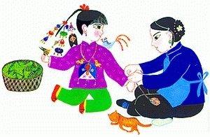 中國古代崇拜五色,以五色為吉祥色。因而,節(jié)日清晨,各家大人起床后第一件大事便是在孩子手腕、腳腕、脖子上拴五色線。系線時,禁忌兒童開口說話。五色線不可任意折斷或丟棄,只能在夏季一場大雨或第一次洗澡時,拋到河里。據(jù)說,戴五色線的兒童可以避開蛇蝎類毒蟲的傷害;扔到河里,意味著讓河水將瘟疫、疾病沖走,兒童由此可以保安康。