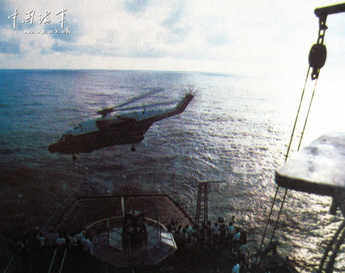 10月12日,天氣格外晴朗。發(fā)射導(dǎo)彈試驗(yàn)任務(wù)一切準(zhǔn)備就緒。這天下午14時(shí)30分,我率領(lǐng)機(jī)組人員精神抖擻地快步走到飛行甲板,地勤人員早已將飛機(jī)拉出機(jī)庫(kù)準(zhǔn)備好,等待飛行員檢查。 一切良好!我和機(jī)組人員充滿信心地跨入駕駛艙,系好安全帶,等待起飛的命令。14時(shí)48分,艦上飛行指揮員、團(tuán)長(zhǎng)郭文才向機(jī)組發(fā)出了“開(kāi)車”的命令,空中機(jī)械師立即啟動(dòng)發(fā)動(dòng)機(jī),頓時(shí)旋翼飛轉(zhuǎn)、馬達(dá)轟鳴。14時(shí)53分,指揮員發(fā)出了“起飛”的命令,我立即向甲板指揮員發(fā)出“解除系留”的信號(hào),“系留已解除!”我立即接通自動(dòng)駕駛儀,上提變距桿,飛機(jī)“刷”的一下離開(kāi)甲板,低著頭吼叫著離艦起飛。