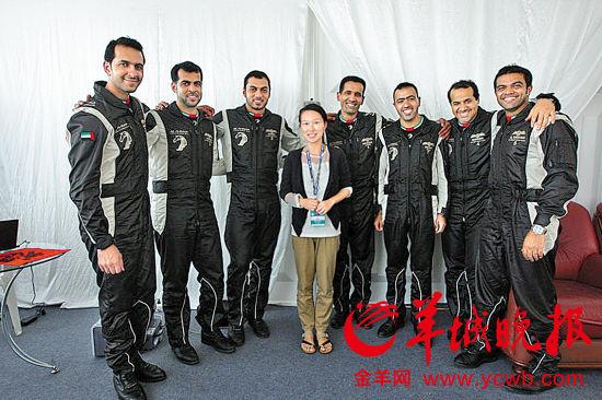 羊城晚報記者與阿聯(lián)酋騎士飛行表演隊全部飛行員合影