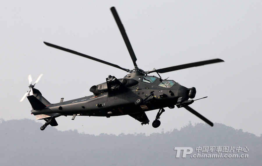 11月13日,我國(guó)自主研制生產(chǎn)的武直-10武裝直升機(jī)亮相在珠海舉行的第九屆中國(guó)國(guó)際航空航天博覽會(huì),在飛行表演中展示了這款直升機(jī)的優(yōu)良性能。記者喬天富 攝(來(lái)源:中國(guó)軍網(wǎng))