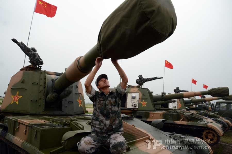 暴雨來臨前期戰(zhàn)士們正在為裝備穿戴炮衣