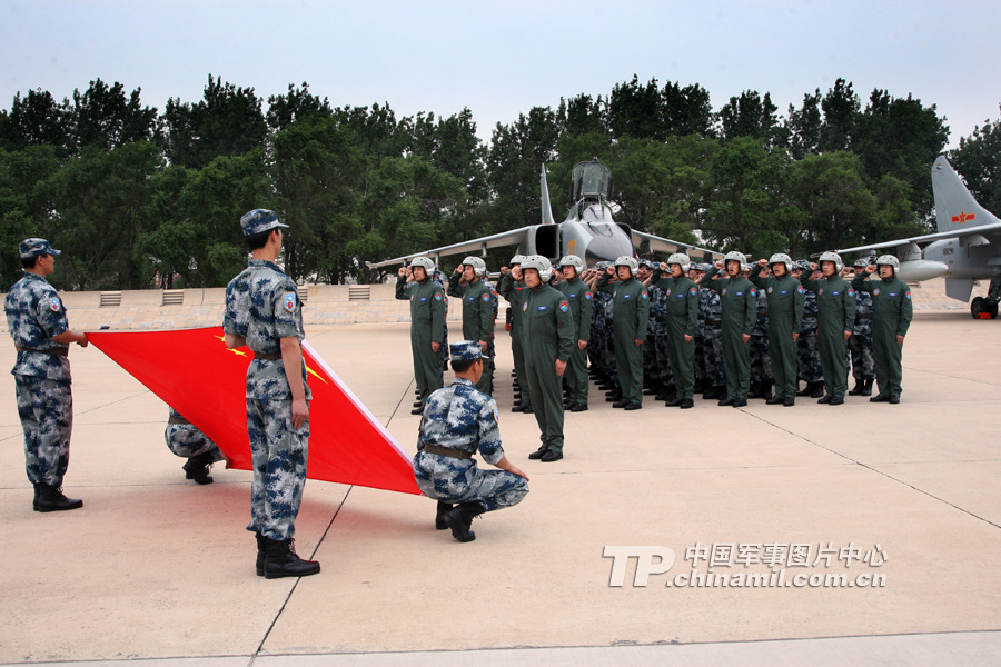 7月27日,參加中俄聯(lián)演的空軍戰(zhàn)斗群官兵出征前在國旗前集體宣誓,立志圓滿完成聯(lián)演任務(wù),為祖國爭光。曹占禮攝