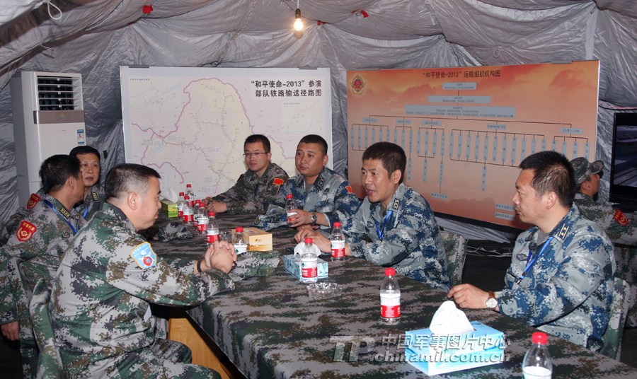在臨時(shí)指揮部中研究鐵路運(yùn)輸路徑圖。 曹占禮 攝