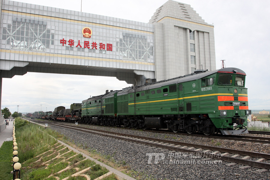 參加“和平使命—2013”中俄聯(lián)合反恐軍事演習(xí)第一列地轉(zhuǎn)專列開出國(guó)門。曹占禮 攝