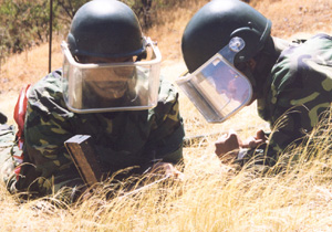 2002年11月1日,專(zhuān)家組按計(jì)劃轉(zhuǎn)場(chǎng)到厄西南部的塞壩村和阿瑞扎,指導(dǎo)厄受訓(xùn)學(xué)員對(duì)這兩片山地雷場(chǎng)進(jìn)行現(xiàn)場(chǎng)掃雷。