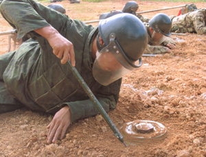 2002年12月31日,中國(guó)首次援外指導(dǎo)掃雷的14名專(zhuān)家圓滿完成在厄立特里亞的人道主義掃雷培訓(xùn)任務(wù)后回到北京。這不僅意味著中國(guó)的掃雷技術(shù)和方法進(jìn)一步得到了國(guó)際社會(huì)的肯定,也標(biāo)志著中國(guó)在國(guó)際人道主義掃雷援助活動(dòng)中又邁出新的步伐。解放軍報(bào)今天刊文,披露中國(guó)進(jìn)行國(guó)際人道主義掃雷援助活動(dòng)的情況。