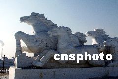 圖:大型雪雕奔馬六駿圖在長春落成