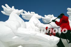 哈爾濱雪雕博覽會一月正在松花江畔舉行,園藝師制作長達數(shù)十米的大型雪雕森林之歌,好似藍(lán)天下的神曲。作者:毛建軍