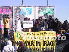今天活動的組織者是一個名為“現在行動,制止戰(zhàn)爭,結束種族隔離”(ANSWER)的國際組織。他們稱,此次號稱“越戰(zhàn)后最大的反戰(zhàn)活動”是為了紀念即將到來的馬丁·路德·金紀念日。