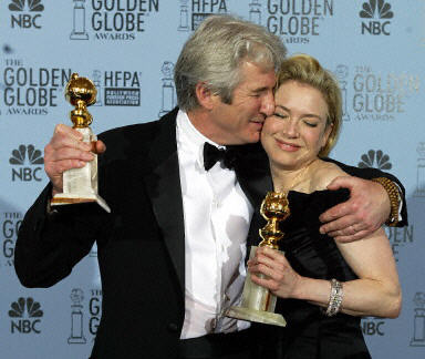 中新網(wǎng)1月20日電 由好萊塢外國記者協(xié)會主辦的第六十屆金球獎頒獎典禮當?shù)貢r間19日晚登場,八項入圍遙遙領(lǐng)先的《芝加哥》獲音樂或喜劇類最佳影片,李察吉爾與蕾妮齊薇格也雙雙勇奪音樂或喜劇類最佳男、女主角。妮可基嫚的《時時刻刻》則獲劇情類最佳影片、劇情類最佳女主角。