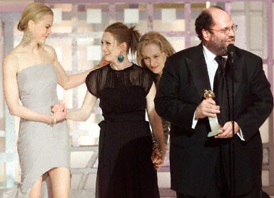 在競爭激烈的劇情類最佳影片項目中,與《時時刻刻》一同入圍的還有《紐約黑幫》、《心的方向》、《魔戒二部曲:雙城奇謀》以及《戰(zhàn)地琴人》。其中雖然有掀起全球票房賣座旋風的《魔戒二部曲》,最后還是由《時時刻刻》勝出。
