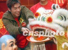 香港歌手許志安一月二十日出席“麥當(dāng)勞TM新年開心成雙”醒獅點睛儀式。錢興強(qiáng) 攝