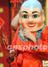 香港麥當(dāng)勞一月二十日在銅鑼灣時代廣場舉行“麥當(dāng)勞TM新年開心成雙”活動。圖為“大頭娃娃”賀新春。錢興強(qiáng) 攝