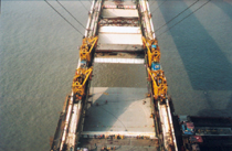 這塊橋面板中將安裝兩只名為“阻尼器”的減震裝置,其作用就像兩根彈簧,以減緩或防止突發(fā)性地震等災(zāi)害所帶來的沖擊力,確保主橋安然無恙。(陸綺雯顧慶生)
