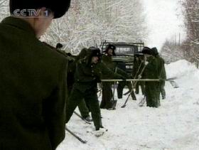 中央電視臺記者在雪崩現(xiàn)場看到,5000多方積雪順山體沖下,造成阿勒泰市區(qū)2000多米道路受阻,一百多米圍墻被沖倒,10多戶住家、約50多人受災(zāi)。