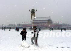 圖:天安門前玩雪自得其樂