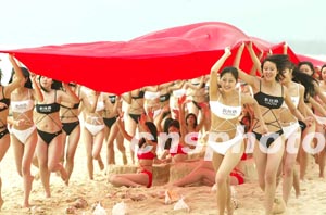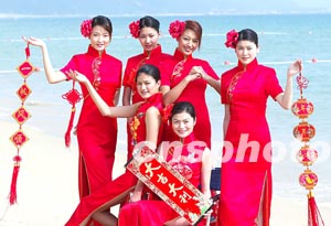 圖:二百多名模特到海南三亞向全國人民拜年