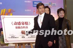 歌星郭富城1月22日在香港出席廣東千秋傳媒有限公司投資的電視劇“動(dòng)感豪情”簽約儀式,郭富城在該電視劇擔(dān)任男主角,亦是他主演的首部國(guó)產(chǎn)電視劇,該電視劇全劇以香港作為背景,透過(guò)內(nèi)地87個(gè)電視臺(tái)播放,讓內(nèi)地超過(guò)數(shù)以億計(jì)的觀眾收看,這將有助內(nèi)地觀眾來(lái)香港旅游的興趣。中新社傳真 鄧慶樂(lè) 攝