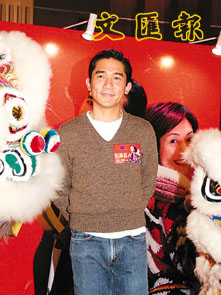 中新網(wǎng)1月24日電 賀歲片《行運超人》昨天在香港舉行首映,梁朝偉偷空從《2046》的拍攝現(xiàn)場趕往出席,不過他為免戲中的造型曝光,先將二撇雞須脫下才出現(xiàn),他說這次的造型是他自己構(gòu)思,想給觀眾有不同的感覺。